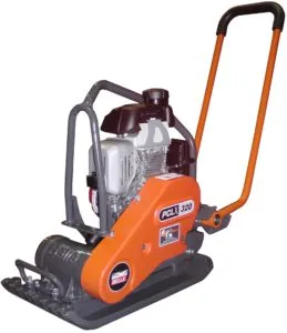 Midweight professional compaction plate with low hand arm vibration. Features comfort grip handle and fully enclosed belt guard for extra protection.